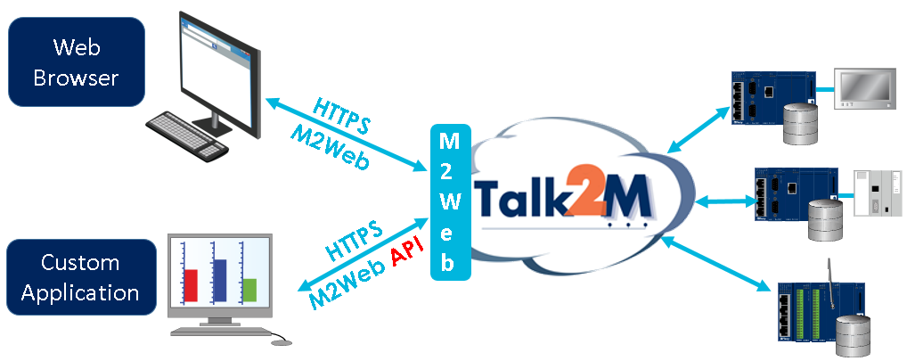 L’utility M2Web API rende disponibili i servizi web abilitati ad eseguire query nei contenuti del portale M2Web, consente di accedere al web server Ewon e ad altri web server presenti nella LAN dell’Ewon. Per utilizzare questo servizio, il router Ewon deve essere collegato a Talk2M.