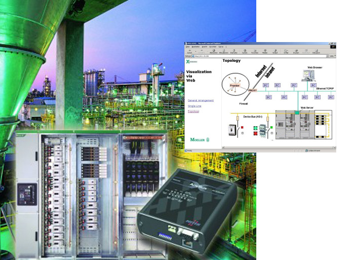Si tratta di un web server industriale installato nei quadri elettrici di distribuzione che permette di visualizzare gli stati degli interruttori su un PC mediante un qualsiasi browser web. Menden Rainer, ingegnere e responsabile di progetto presso la sede Moeller di Bonn dichiara: "Guardando l'intero mercato dei quadri elettrici per la distribuzione di energia, solo il 30 per cento sono dotati di un’interfaccia fieldbus. Ciò rende problematica l’installazione di sistemi di monitoraggio e controllo semplici e a basso costo.