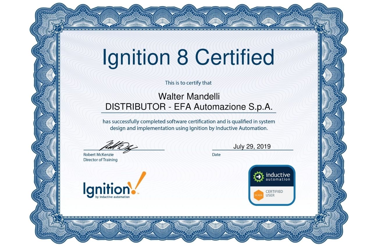 Nel luglio 2019, primo tra tutti ad ottenere la certificazione Ignition 8 in Italia e in Europa, l’ing. Walter Mandelli, Technical & Engineer Manager di EFA Automazione. Una grande soddisfazione per tutto il team EFA e un esempio per i colleghi. A seguire, in settembre, anche l’Ing. Francesco Manca, Technical Department, ha conseguito lo stesso attestato.