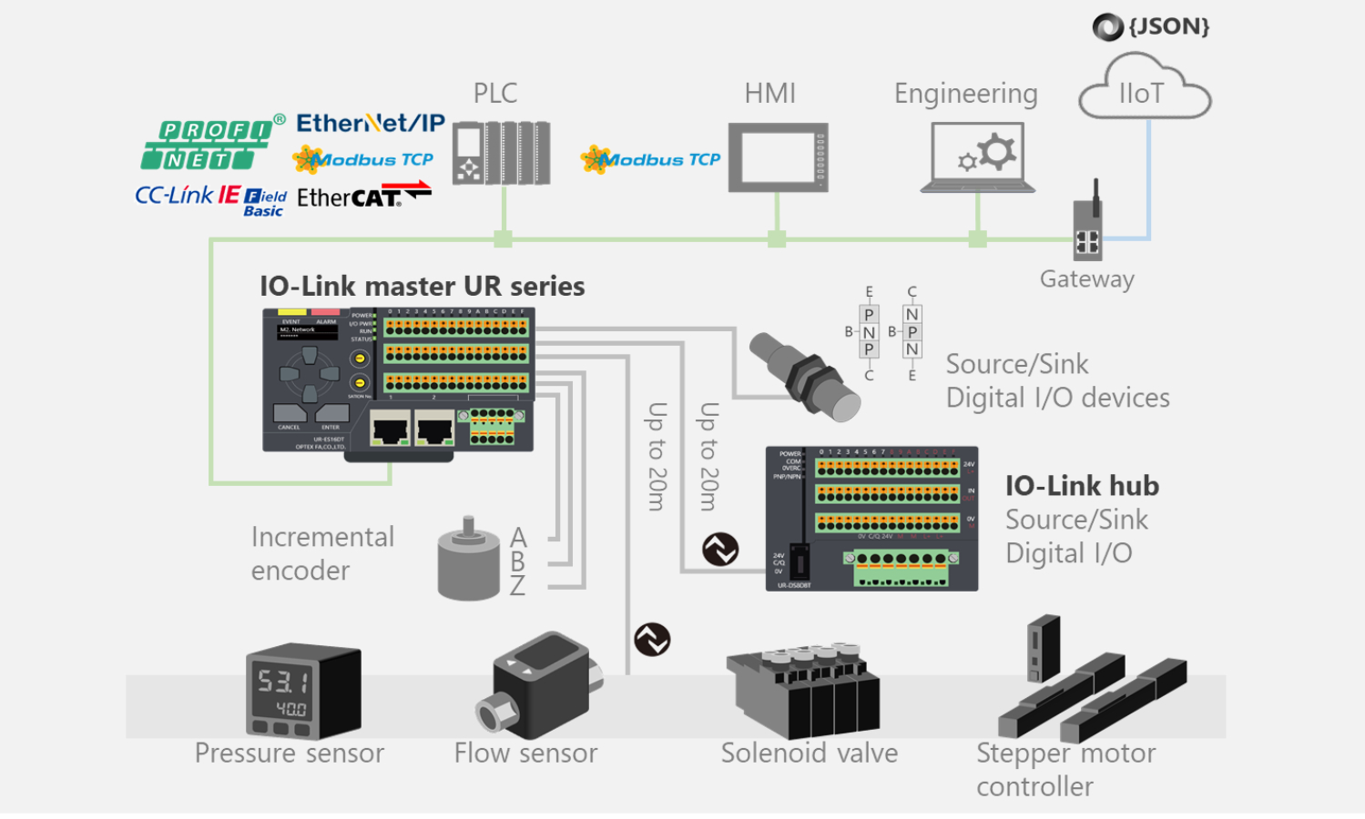 L’utilizzo di dispositivi di OPTEX FA, IO-Link Master e IO-Link, elimina la necessità di configurare i file IODD.