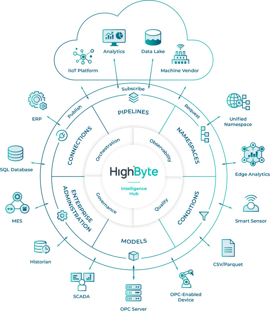 HighByte Intelligence Hub è una soluzione software industriale per il DataOps, progettata specificatamente per la modellazione, la trasmissione e la gestione dei dati industriali.