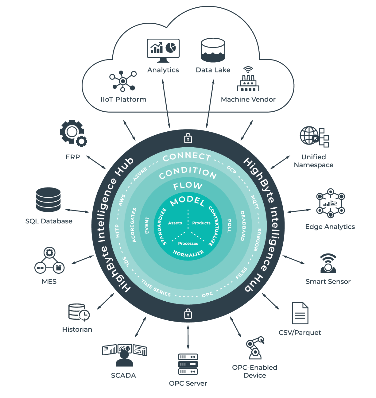 Grazie a questa piattaforma è possibile modellare flussi di dati in real time, standardizzare i punti di dati e i modelli di dati provenienti da macchinari diversi e contestualizzare carichi di dati che diversamente sarebbero privi di descrizione. Con HighByte Intelligence Hub è semplice attingere ai dati in tempo reale, provenienti da qualsiasi fonte, anche dai device all’Edge.