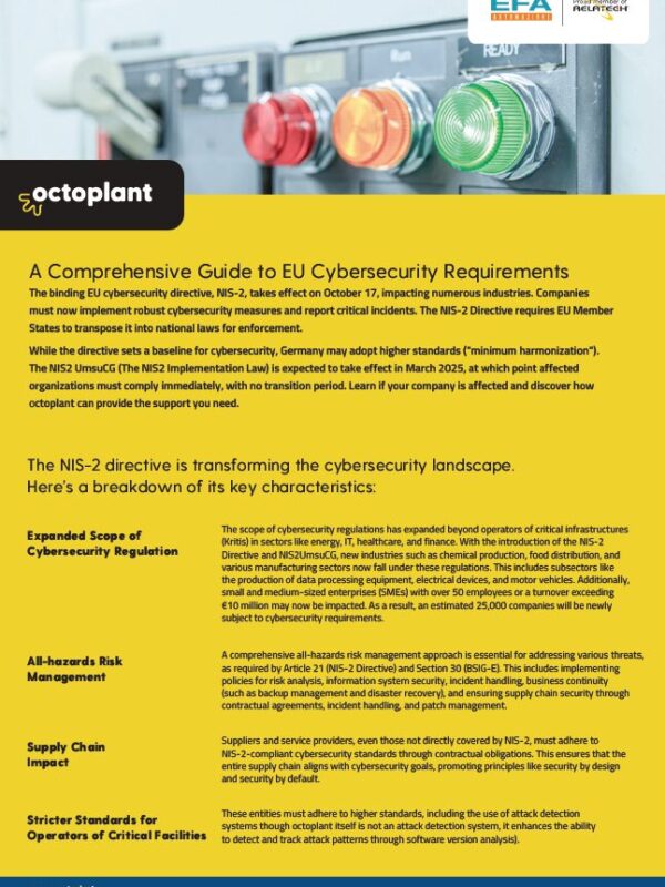 La piattaforma octoplant fornisce una visione completa dell’impianto, garantendo la coerenza dei dati e una maggiore protezione all’interno degli impianti di produzione.