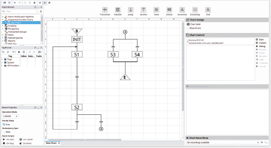 Editor grafico per la creazione di logiche e di sequenze mediante il formalismo SFC (fasi, transizioni):