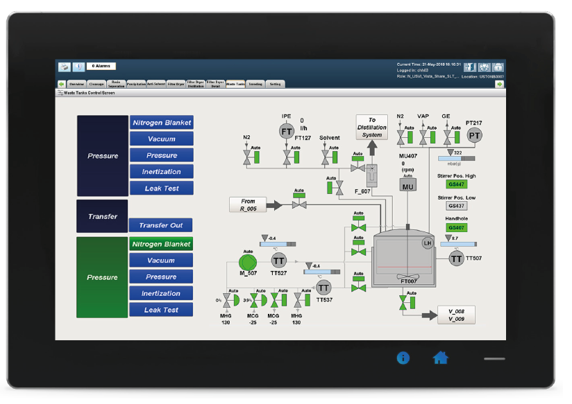 Il modulo Vision consente di creare delle pagine HMI per la visualizzazione e l’analisi dei dati, sia storici che in tempo reale, nonchè per il controllo dell’impianto, mediante pagine riassuntive, sinottici animati, tabelle e grafici interattivi.