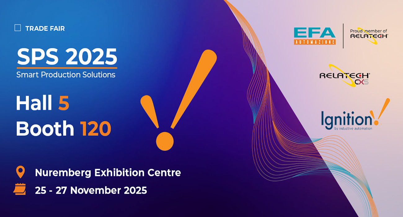Relatech ed EFA Automazione, parte del Gruppo Relatech e distributore esclusivo per l’Italia di Ignition, la piattaforma di Inductive Automation, annunciano la partecipazione alla fiera SPS di Norimberga 2025 (25-27 novembre) attraverso Relatech CXS GmbH, che opera in qualità di distributore della piattaforma Ignition per Germania e Austria.