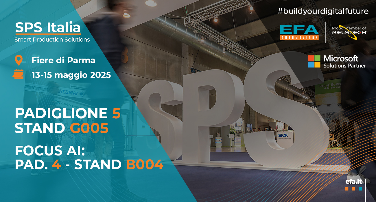 L’innovazione non si ferma mai, e nemmeno noi. Anche quest’anno EFA Automazione e Relatech saranno protagonisti a SPS Italia 2025, pronti a mostrare come la tecnologia stia ridefinendo il futuro dell’automazione industriale.