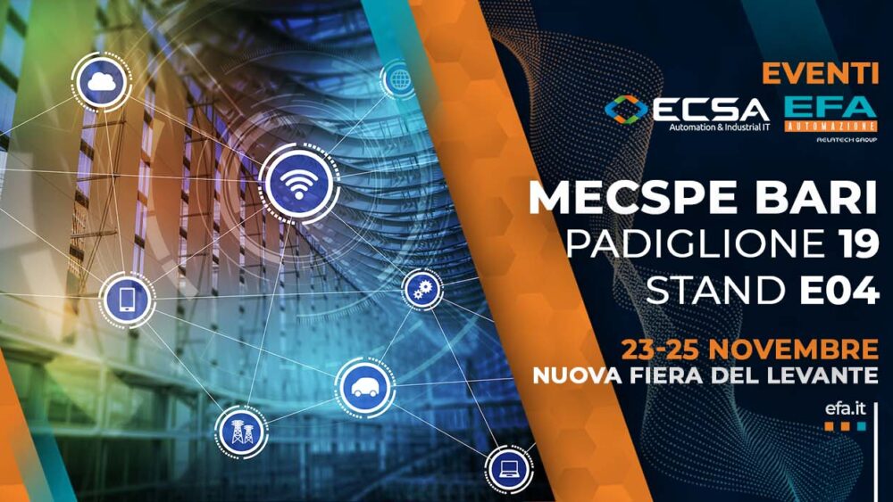 MECSPE Bari 2023: noi ci saremo!  EFA Automazione, insieme al partner ECSA Solutions, al MECSPE Bari, 23-25 novembre 2023 PADIGLIONE 19, STAND E04 EFA Automazione SpA sarà presente all’edizione 2023 di MECSPE Bari insieme al […]